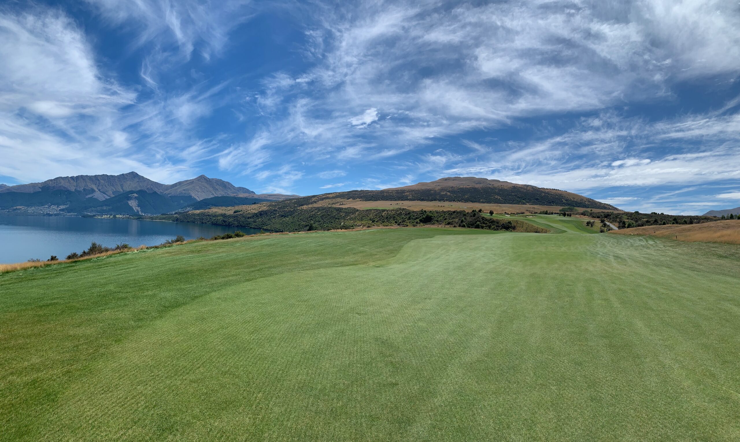 With a backdrop of 2,300 vertical metres of the Remarkables mountain range and an outstanding lake panorama, Jack’s Point Golf course is one of the most visually spectacular in the world. Designed in harmony with the natural environment, the course weaves through native tussock grasslands, dramatic rock outcrops, steep bluffs and swathes of native bush to the edge of Lake Wakatipu.